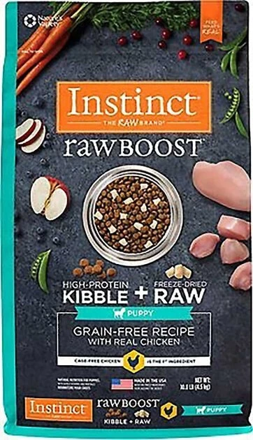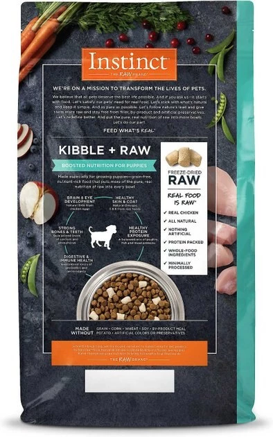 - Comes with Instinct Raw Boost Puppy Grain-Free Recipe with Real Chicken & Freeze-Dried Raw Pieces Dry Dog Food and Zesty Paws 8-in-1 Multifunctional Chicken Flavor Soft Chew Dog Supplement.