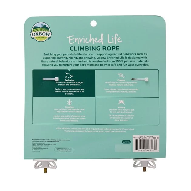 Keep your mini mate movin’ with the Oxbow Enriched Life Climbing Rope Small Animal Toy. This fun rat and gerbil toy is the paw-fect way to help your pet pal pass the time away. It is designed to bend into an almost endless number of shapes for tons of climbing fun—and easily connects to your cuddly companion’s wire habitat. Constructed using soft, 100% pet-safe materials, this small pet toy for rats and gerbils is ideal for your fuzzy buddy—and all his friends! It is engineered to encourage and support his natural instincts to forage and explore, so he’ll never be bored.