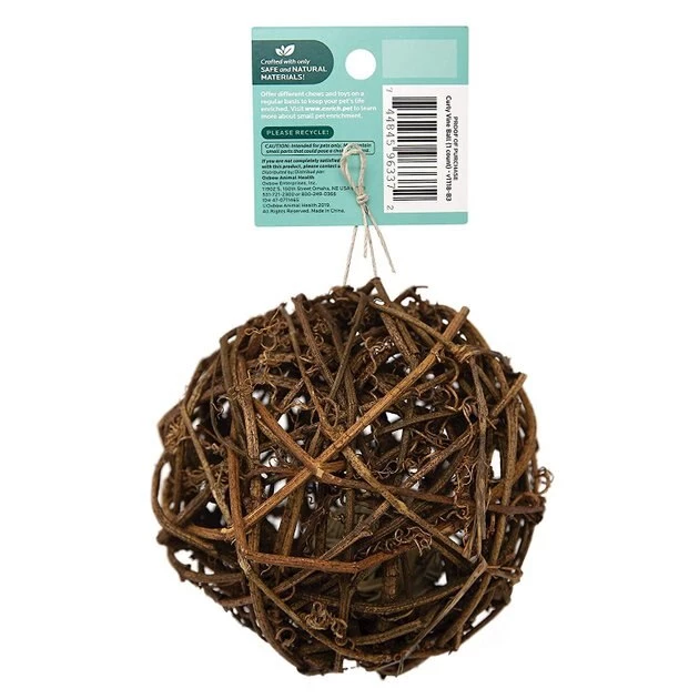 The Oxbow Vine Ball Small Animal Toy provides your four-legged friend with a whole lot of nibbling and gnawing fun! This 100% pet-safe toy helps enrich your guinea pig’s life with interactive play that’s meant to excite and engage. The circular shape is made up of branches and twigs that are irresistible to your best bud’s bite. Help nurture your small sidekick’s mind and body through an instinctual accessory that encourages tons of squealing delight. The Deluxe Curly Vine Ball is also great for your rabbit or other small animal.