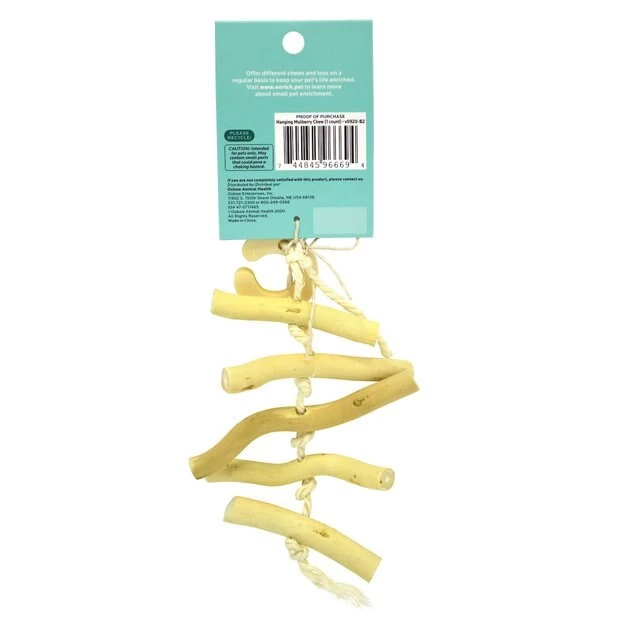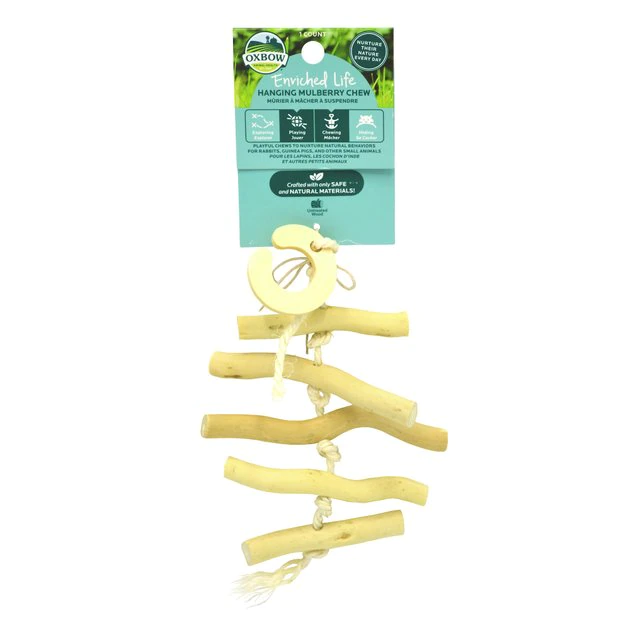 Add some culture to your cuddly companion’s habitat with the Oxbow Enriched Life Hanging Mulberry Chew Small Animal Toy. This guinea pig and rabbit chew toy is the paw-fect way to promote healthy chewing by your pet pal all day long. It is designed to easily attach to his habitat and hang above his play area to encourage mental and physical enrichment. This small pet chew toy helps strengthen the bond that you have with your furry buddy and supports his natural instincts to chew and play. It is crafted using coarse, 100% pet-safe materials to help keep your mini mate happy and healthy.