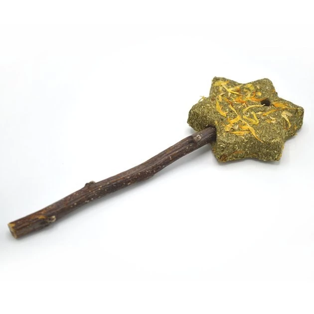 Endow your mini mate with magical powers using the Oxbow Enriched Life Magic Timothy Wand Small Animal Toy. This guinea pig and rabbit chew toy features a fun design that encourages mental and physical enrichment in your favorite furry friend. It is the paw-fect way to help strengthen the bond that you have with your animal amigo while encouraging his natural instincts to chew and play. This small pet chew toy is crafted using high-fiber timothy hay and enticing marigold petals that are 100% pet-safe for the health and happiness of your cutesy companion.