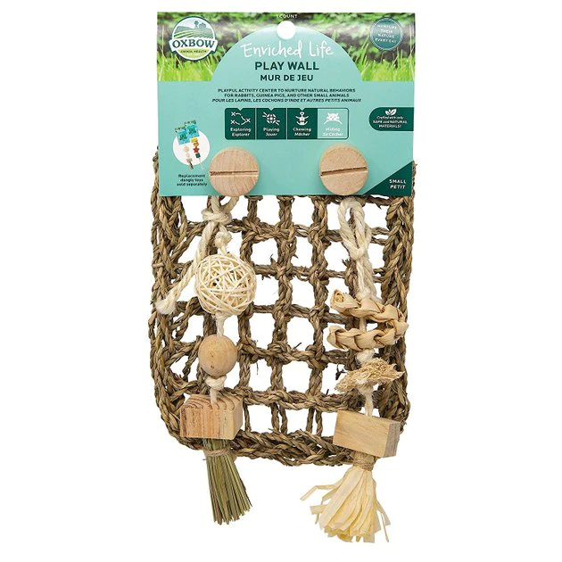 The Oxbow Play Wall Small Animal Toy comes complete with a variety of shapes and textures that’ll stimulate your best bud for hours. This 100% pet-safe toy helps enrich your guinea pig’s life with interactive play that’s meant to excite and engage. The woven wall features two dangly ropes that come with textured shapes, giving your four-legged friend plenty of options for nibbling and gnawing fun! Help nurture your small sidekick’s mind and body through an instinctual accessory that encourages tons of squealing delight. The Play Wall is also great for your rabbit or other small animal!