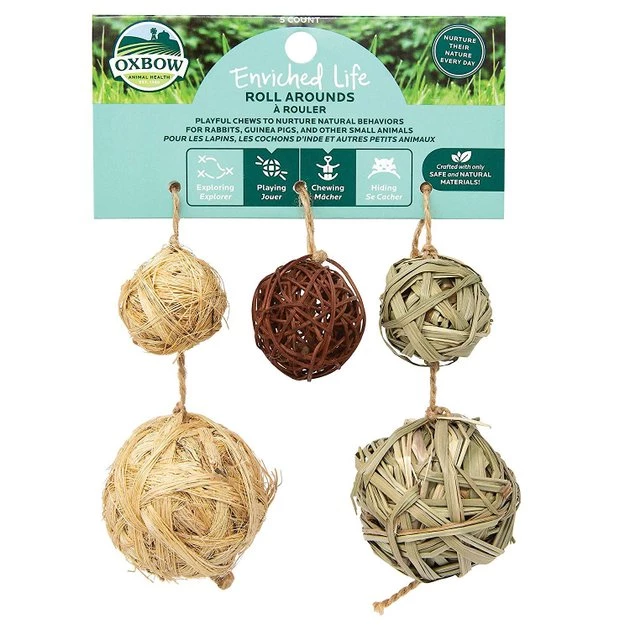 Oxbow Roll Arounds Small Animal Chew Toy is a paw-fect addition to your four-legged friend’s living space. These 100% pet-safe toys help enrich your guinea pig’s life with interactive play and chewing fun. Each ball is a different material so the variety of textures will never bore your best bud’s bite! Help nurture your small sidekick’s mind and body through an instinctual accessory that encourages tons of squealing delight. The Roll Arounds are also great for your rabbit or other small animal who could benefit from engaging and exciting fun.