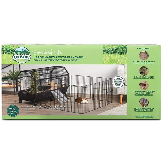 Give your four-legged friend even more room to explore with the Oxbow Hamster Habitat with Play Yard. Your best bud will love calling this place home as it keeps him stimulated with an included platform and ramp that doubles as a secret hideout! The extra-large yard adds to his habitat for even more room to play while the water bottle and food dish provide needed essentials you’ll be grateful for. An engaging hay manager allows your hamster to have access to 350-degree feeding and the open-air ventilation provides you optimal viewing as your small sidekick explores.