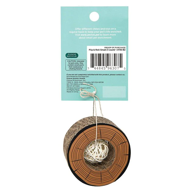 The Oxbow Flip & Roll Small Animal Chew Toy is packed with a variety of fun textures and shapes that your curious creature will love. This 100% pet-safe toy helps enrich your rabbit’s life with interactive play that’s meant to excite and engage. The wheel shape can be rolled and flipped while the irresistible texture inside provides tons of munching fun. Help nurture your small sidekick’s mind and body through an instinctual accessory that encourages tons of squealing delight! The Flip & Roll is also great for your guinea pig or other small animal.