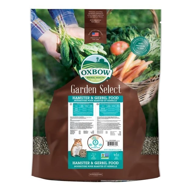 Oxbow Garden Select Hamster & Gerbil Food is complete, balanced and bursting with garden fresh flavor. This mix contains all of the complete nutrition your small furball needs in a flavor profile hand-picked from Mother Nature’s kitchen with ingredients such as whole yellow pea, tomato, carrot, spinach, and banana. The garden fresh blend also includes a mix of three varieties of hand-selected grass hay to encourage meal enrichment and variety.