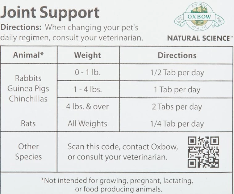 For all other species, consult Oxbow or your veterinarian. When adding supplements to your pet’s diet, always consult your veterinarian.