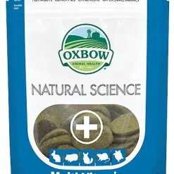Support the overall health of your small pet and promote longevity with Oxbow Natural Science Multi-Vitamin Small Animal Supplement. Small pets including Guinea Pigs, rabbits, hamsters, gerbils and chinchillas are living longer because of better care and nutrition. As they age, the most common ailments reported are related to digestive, urinary, joint and skin and coat issues. Oxbow Natural Science Multi-Vitamin Small Animal Supplement is a hay-based, high-fiber supplement with essential vitamins to support all your pet’s body systems. It contains Omega 3 and 6 fatty acids for healthy skin and coat, timothy grass, barley flour and oat grout flour to aid in digestion and vitamin C, B12 and D3 supplements for overall health. Depending on weight, feed rabbits, Guinea Pigs and chinchillas ½ to 2 tabs a day, rats ¼ tab a day and hamsters and gerbils 1/8 tab. It is not recommended for mice.