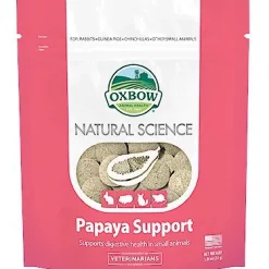 Support the digestive health of your small pet with Oxbow Natural Science Papaya Support Digestive Health Small Animal Supplement. Digestive issues are not uncommon for rabbits, guinea pigs, chinchillas and other small furry friends, but have no fear because Oxbow is here! This chewable supplement is made with premium ingredients including papaya and pineapple. These two ingredients, are natural sources of active enzymes—papain and bromelain—which aid in the digestion of proteins. With the addition of timothy hay, this supplement is also high-fiber to further help your pal’s digestion. Simply, break the tablet in half to release the aroma and either conceal it in your pet’s food, or crush it up and sprinkle it right on top!