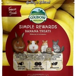 Provide your small pet treats that are made from 100 percent freeze-dried banana with Oxbow Simple Rewards Freeze-dried Banana Small Animal Treats. Treats are a great way to bond with your pet, encourage interaction and provide healthy, fun mental stimulation. Oxbow Simple Rewards Freeze-dried Banana Small Animal Treats are a great source of Vitamin B6 and potassium and contain no added sugar or artificial colors or preservatives. Feed one-to-two treats a day. Treats should not exceed five percent of your pet’s daily food intake.