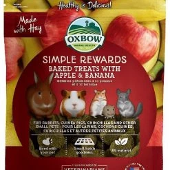 Reward your small pet and support his overall health with Oxbow Simple Rewards Oven Baked with Apple & Banana Small Animal Treats. Treats are a great way to bond with your pet, encourage interaction and provide healthy, fun mental stimulation. Oxbow Simple Rewards Oven Baked with Apple & Banana Small Animal Treats are a wholesome, oven-baked blend of freeze-dried apples and bananas that provide a tasty, enriching snack. They are low in calcium and protein with a balanced protein-to-fiber ratio and no artificial color or preservatives. Feed one-to-two treat pieces a day. Treats should not exceed five percent of your pet’s daily food intake.