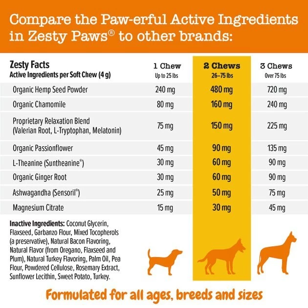 - These advanced calming chewables aid dogs with deluxe support for normal stress, nervousness, and hyperactivity to help them stay calm, comfy, happy, and most of all, zesty!