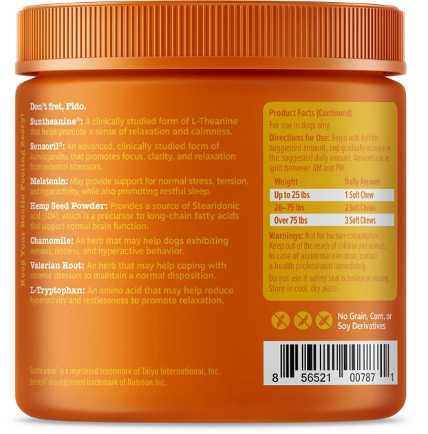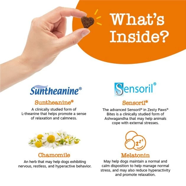 - These stress soothing chews also include Sensoril Ashwagandha, an advanced, clinically studied form of Ashwagandha that promotes focus, clarity, and calmer relaxation from external stressors for any small, medium, or large dog.