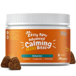 Zesty Paws Advanced Calming Turkey Flavored Mini Soft Chew Dog Supplement features Suntheanine, an advanced form of L-Theanine along with premium Sensoril Ashwagandha. Together, these ingredients along with Melatonin help support relaxation for your canine pet. Plus, these soft chews also include Chamomile, Valerian Root, and L-Tryptophan for additional support to help your pup stay calm! Best of all, pets love the delicious taste and pet parents can treat themselves to a sigh of quiet relief knowing that their doggy will be a pro at composure and feeling too cool for a thunderstorm, separation, fireworks, car rides and travel, and other moments of normal stress.