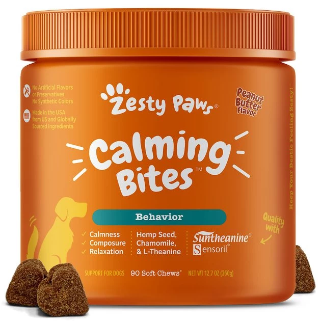 You know how it impacts your overall sense of wellbeing when you’re anxious or stressed, and the same is true for your dog. Zesty Paws All Ages, Calming Bites, Peanut Butter Flavored Soft Chews, Behavior Functional Dog Supplement are soft chews that are formulated to help calm stressed, nervous and hyperactive pups. They are packed with ingredients that may help put your dog at ease and help him focus, including chamomile, valerian root, L-tryptophan and sensoril ashwagandha. They also feature suntheanine, an amino acid that helps promote a sense of relaxation and calmness. These chews work as an effective way to help your dog relax during events like fireworks or thunderstorms. And, if you want a supplement that can pull double-duty and treat your dog’s mouth at the same time, then try Zesty Paws Hemp Elements Calming Orastix Dog Supplement. These premium sticks feature a combination of hemp seed, melatonin and suntheanine to help your dog handle environmental stress, tension and hyperactivity. Along with helping your dog feel more at peace, these dental sticks can also work to freshen his breath. Together, these supplements can work to have your canine companion feeling cool as a cucumber.
