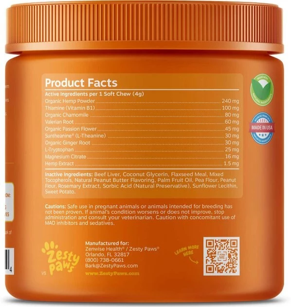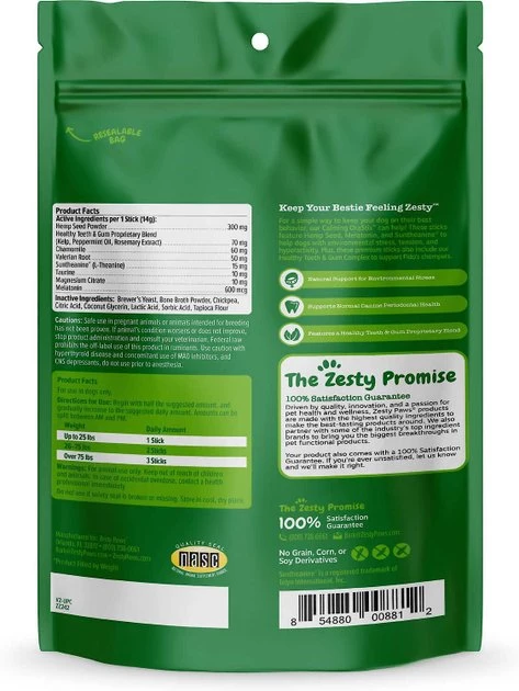 - Zesty Paws Hemp Elements Calming Orastix Dog Supplement works to maintain the health of your dog’s teeth and gums, while freshening his breath.