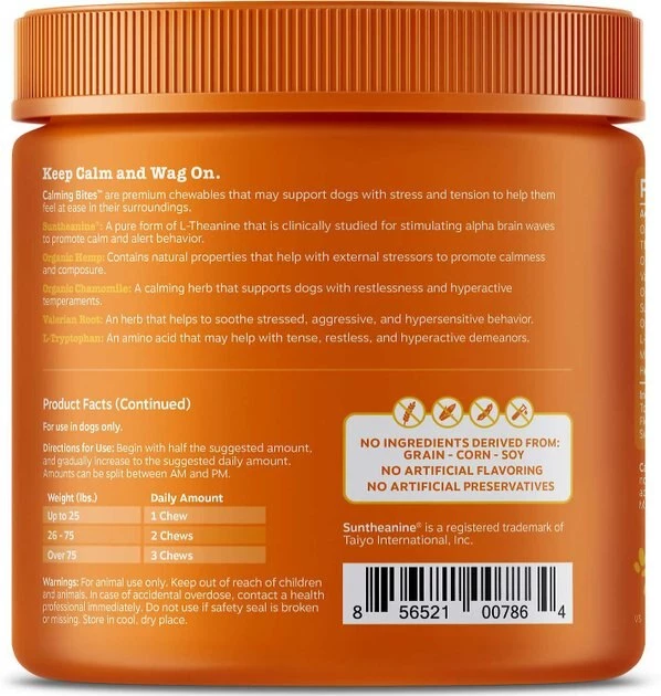 - Providing your dog with valerian root, organic hemp seed powder, organic passion flower, magnesium citrate, l-tryptophan and organic ginger root, both products work to provide a sense of calm.