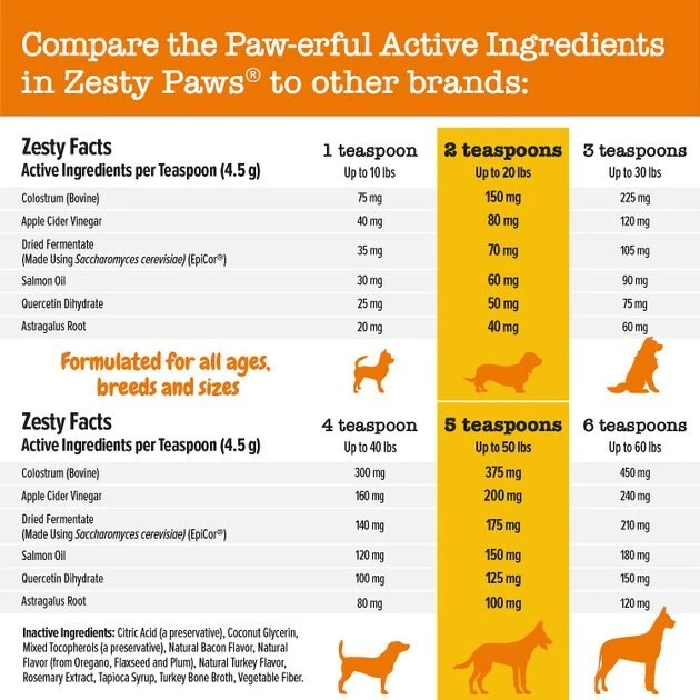 Allergies got your furry friend down? With Zesty Paws Allergy & Immune Flavor Infusions Immune Support Turkey Flavored Liquid Dog Supplement, give him some much-needed relief. It’s a simple and effective way to administer a supplement to your pet—with a tasty bone broth base chock full of nutrition, you can’t go wrong with this path to daily relief and comfort. EpiCor is a premium natural yeast fermentate that boosts the immune system, while ingredients such as colostrum, apple cider vinegar, fish oil, and quercetin work together to improve the immune system, seasonal allergies, and skin health. Better yet, this aids in maintaining your favorite canine’s normal histamine levels! Ditch the pill for this yummy special treatment.