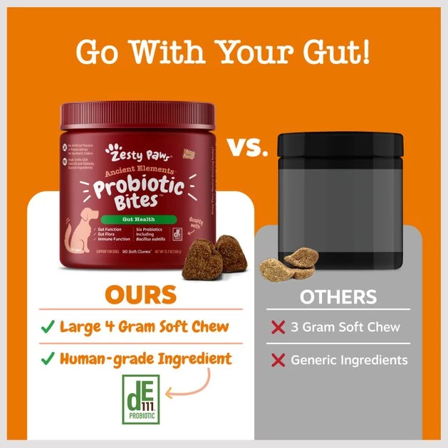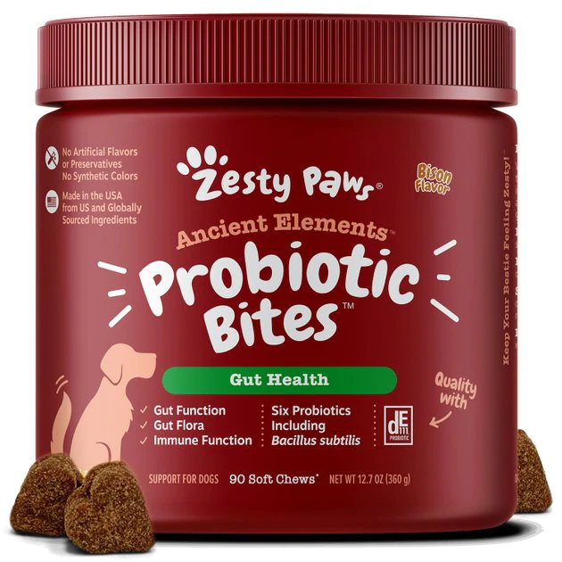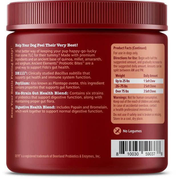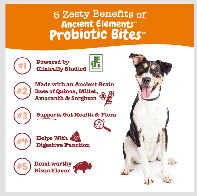 - Ancient Elements Probiotic Bites are functional soft chew supplements that contain paw-some Proprietary Six-Strain Gut Health Blend for gut, immune, and bowel support!