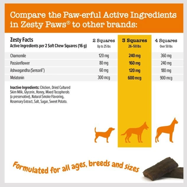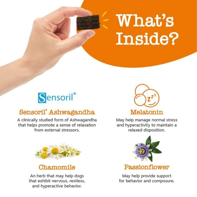 - Each tasty square features Sensoril, an advanced and highly bioactive form of Ashwagandha that provides your canine with clinically studied support for focus, clarity, and relaxation from external stressors.