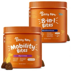 As a pet parent, you want to know you are doing all you can to make sure your dog’s hips and joints are being taken care, along with his overall wellbeing. The Zesty Paws Mobility Bites Hip and Joint Support Duck Flavor Dog Supplement, and Zesty Paws 8-in-1 Multivitamin Bites Chicken Flavor Dog Supplement bundle works to do just that. Zesty Paws Mobility Bites Hip and Joint Support Chews for Dogs are chews made with glucosamine and chondroitin for joint mobility. With a delicious duck flavor that your dog is sure to love, he won’t believe it is actually good for him, too. To ensure your dog’s overall health and wellbeing is being looked after, turn to the Zesty Paws Multivitamin Bites Dog Supplement. It’s an all-around daily multi-vitamin that’s loaded nutrients to support your dog’s overall health. It’s formulated with omega-3 fatty acids plus vitamin E to nourish the skin and coat, glucosamine, chondroitin and MSM for healthy joints, and probiotics and enzymes to support healthy digestion. Plus, full of antioxidants to maintain a healthy immune system, and folic acid and Q10, an enzyme that promotes heart health. With a chicken flavor that he will surely love, this multi-vitamin works to keep your dog feeling fit as a fiddle. This bundle can help your canine companion keep living his best life.