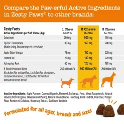 - Treats contain 250 million CFU of probiotics plus colostrum and apple cider vinegar to support immunity.