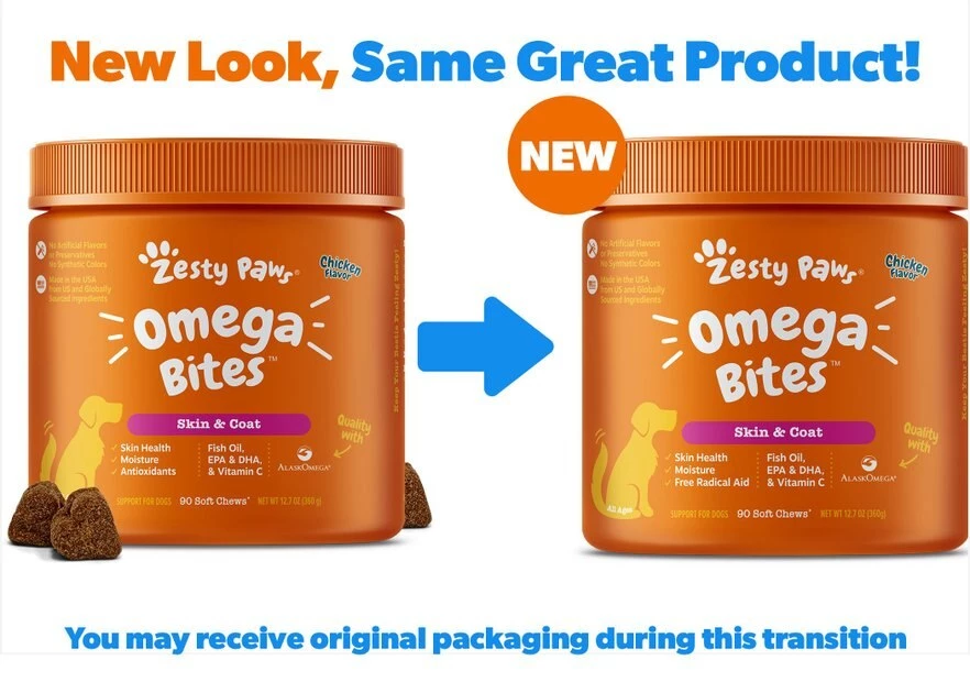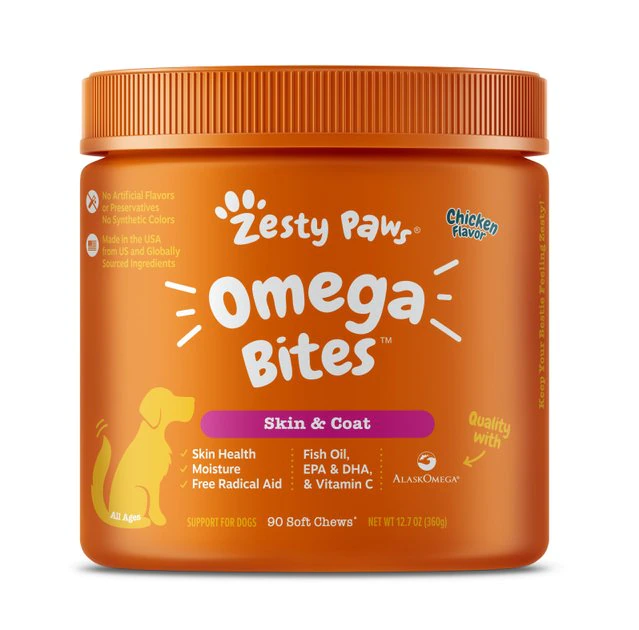 As a dog parent, it’s natural that you’re devoted to giving your furry friend ways to stay zesty. That’s what motivated Zesty Paws to create Omega Bites functional supplements, which are great-tasting soft chews that support skin health for dogs – small, medium, or large, and no matter what breed! Each chew features AlaskOmega, a premium fish oil with Omega 3 fatty acids (EPA and DHA), along with Vitamin C, Vitamin E, and Biotin (or Vitamin B7). Plus, its premium omegas and vitamins make this chewable functional pet supplement a great way to support skin moisture content and overall skin health, while also providing free radical support for your pup. You’ll have the daily relief and comfort of giving senior and adult dogs the best support for their skin health. Plus, they’ll feel happy and spoiled well with special treatment thanks to the delicious flavor, while you no longer have to deal with the pain of giving your dog a big pill. That way, they’ll keep feeling good and zesty, which treats you to even more fun and fond memories! Best of all, pets that are “anti bad flavors” will love the delicious taste! Also, pet moms and dads can let out a sigh of relief knowing that while their pups are feeling spoiled with special treatment, they’ll also be getting the premium support for skin health.