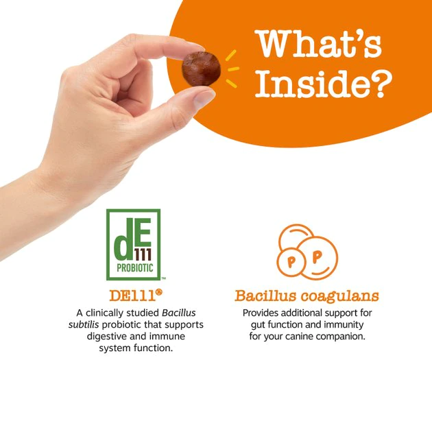 - This chewable functional supplement contains DE111, a clinically studied Bacillus subtilis that supports digestive function and the immune system.