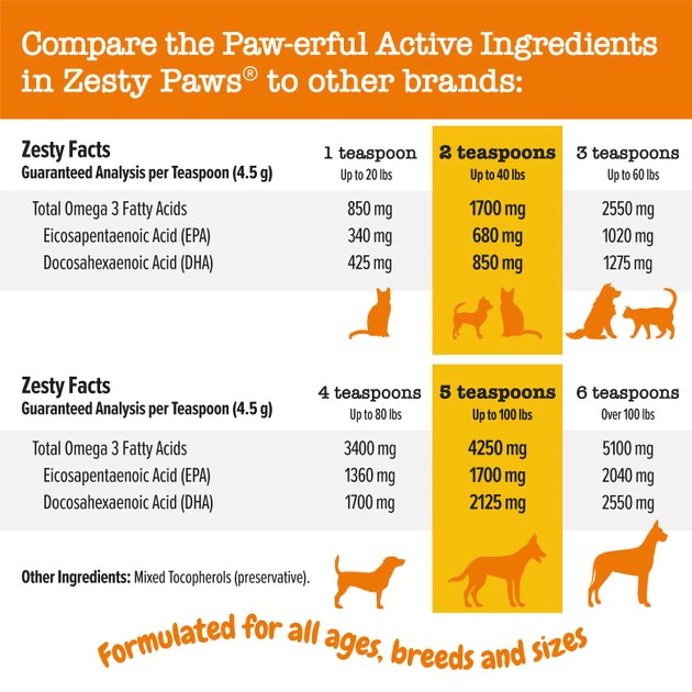 Nothing gets dogs and cats more excited than mealtime, so why not give your pet another mouthwatering reason to race to their food bowl with a paw-some fish oil with omegas? As a source of Omega-3 fatty acids (EPA and DHA), Zesty Paws mouthwatering Wild Alaskan Salmon Oil is a premium fish oil that provides support for skin health to help canine and feline pets – large or small – look as great as they feel. Any dog and cat breed will surely get hip to it and love it! Plus, we know your pet is anti bad flavors. So best of all, pets love the delicious taste of this food topper! Also, pet moms and dads can let out a sigh of relief knowing that their pups will get the support they need with a simple, mess free bottle of Salmon Oil product that won’t coat your floors with oil!